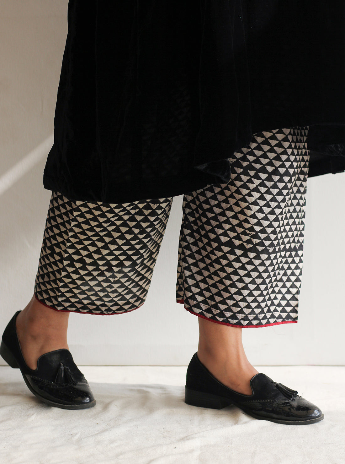 Black Geometric Print Silk Farshi