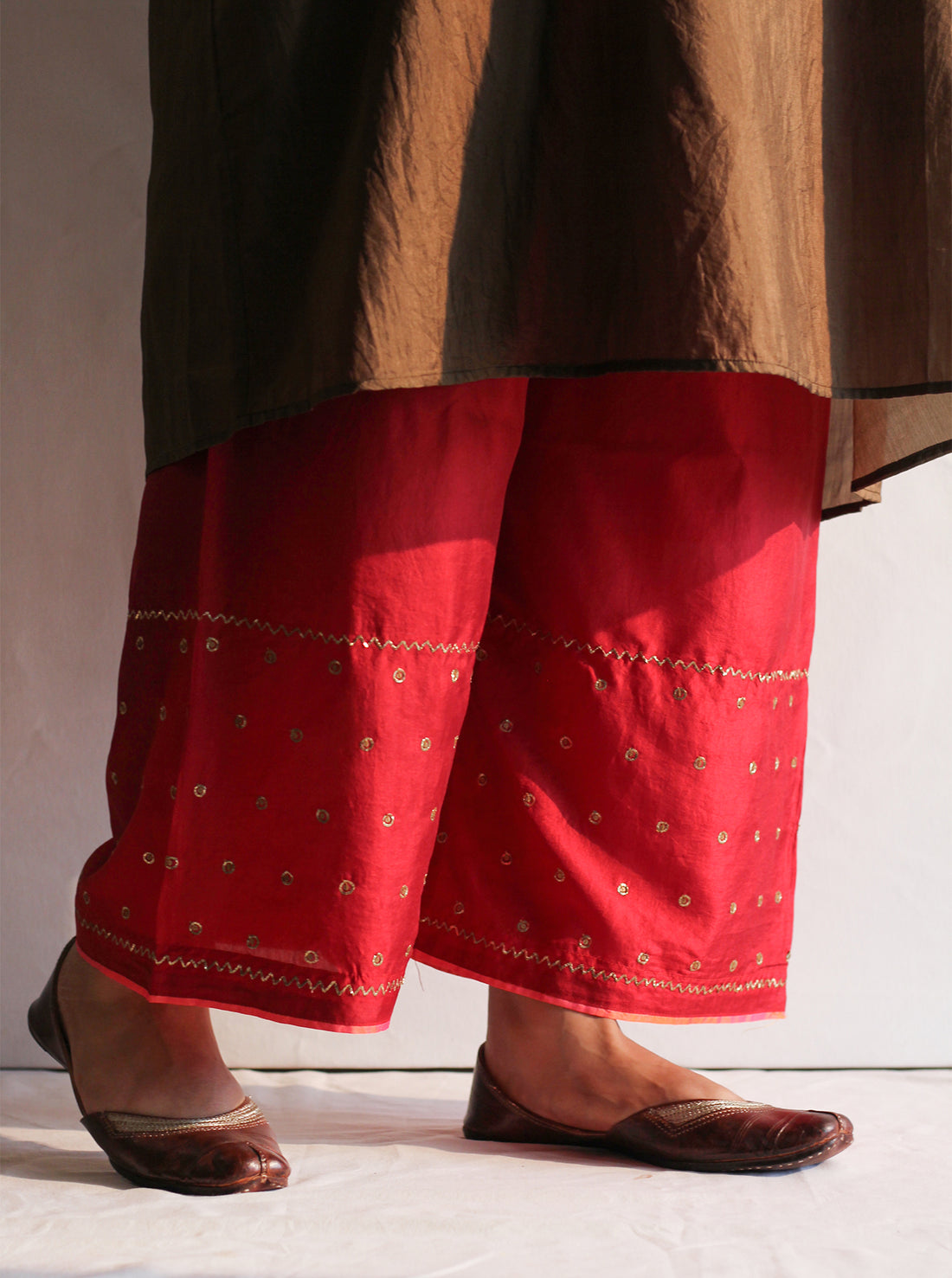 Scarlet Embroidered Silk Farshi