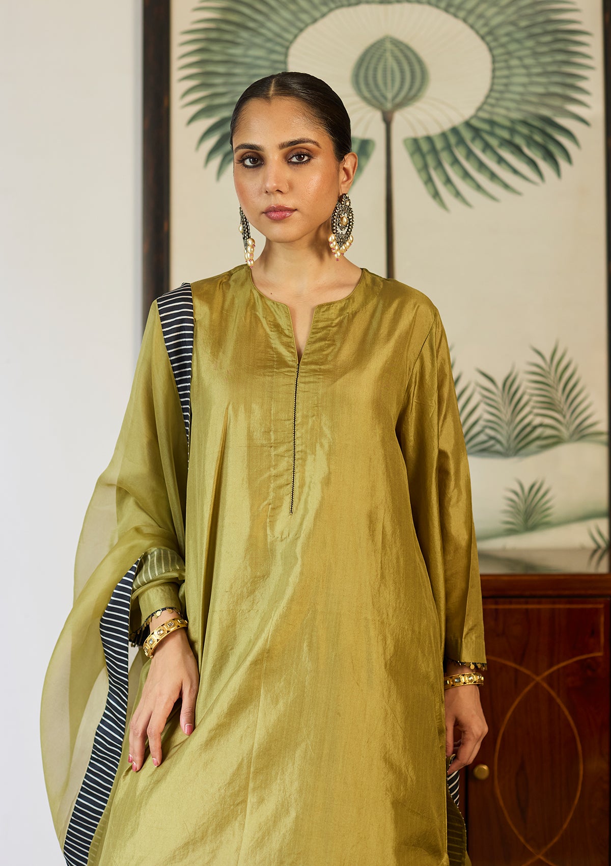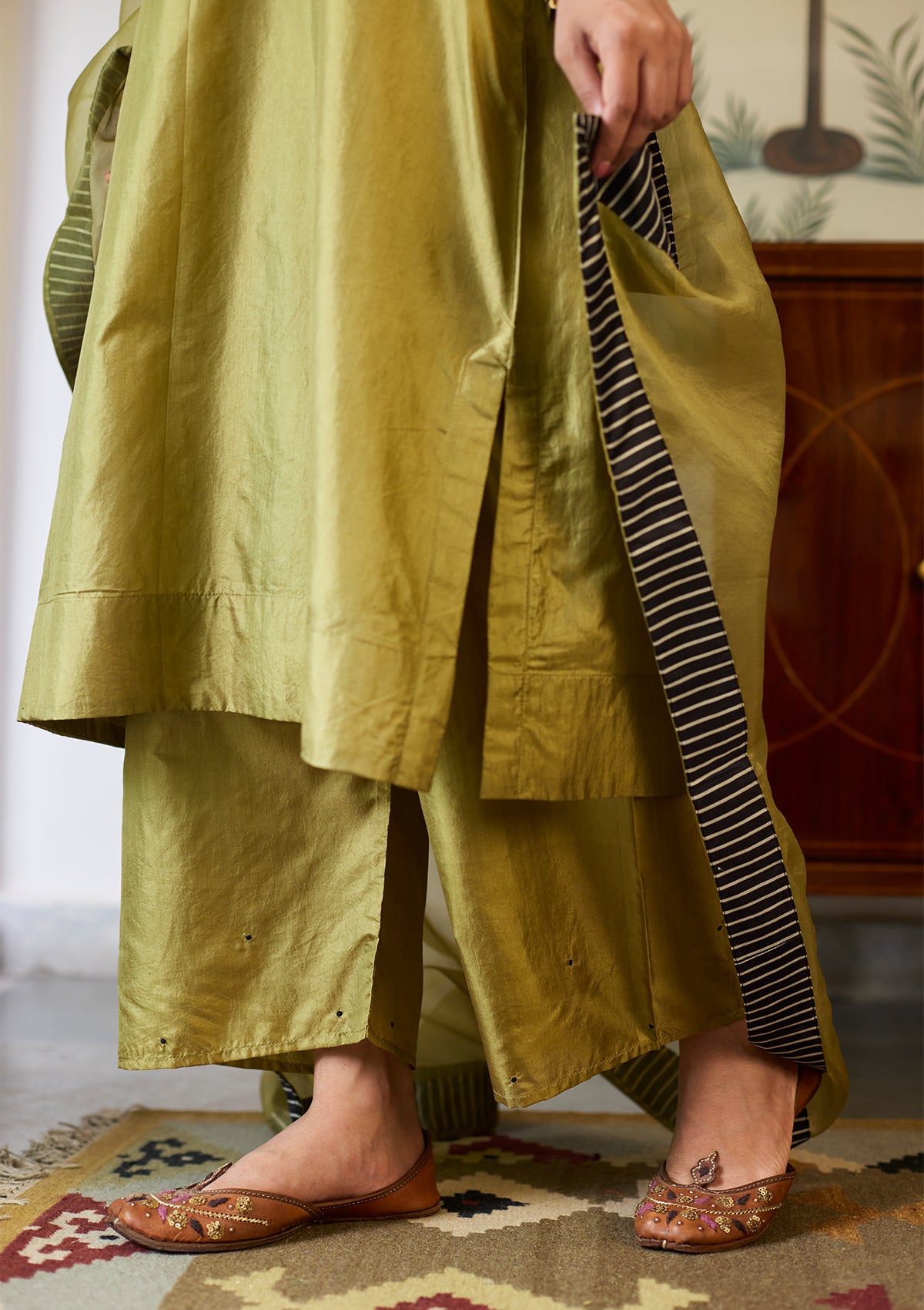 Leaf Green Silk Kurta Set